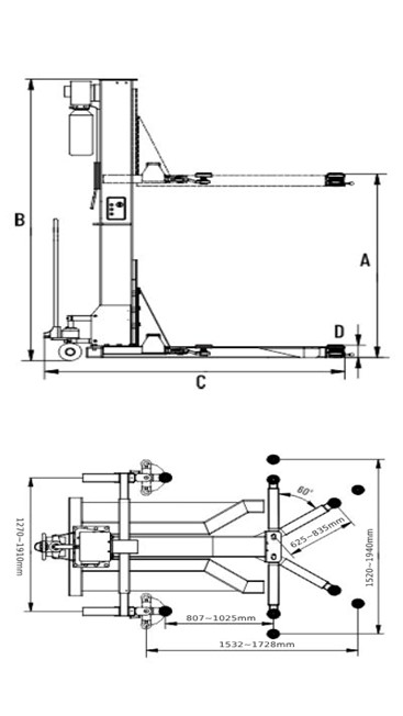 Max Lifting Height without 3” ext adapter A | 1803mm – 1852mm |